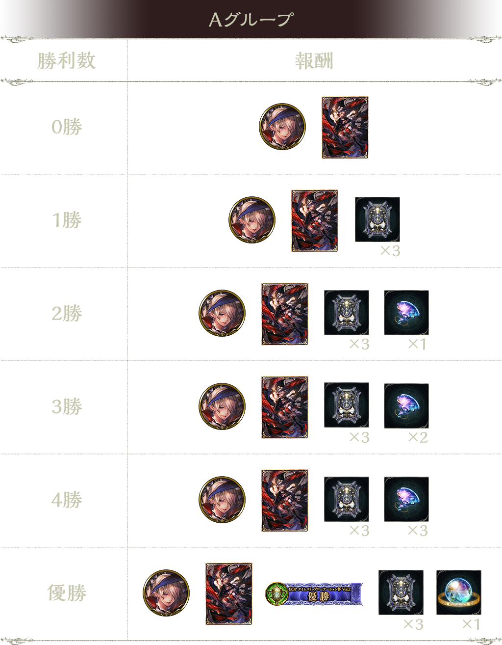3勝:タイムスリップローテーションカードパックチケット 3枚、オーブの欠片 2個